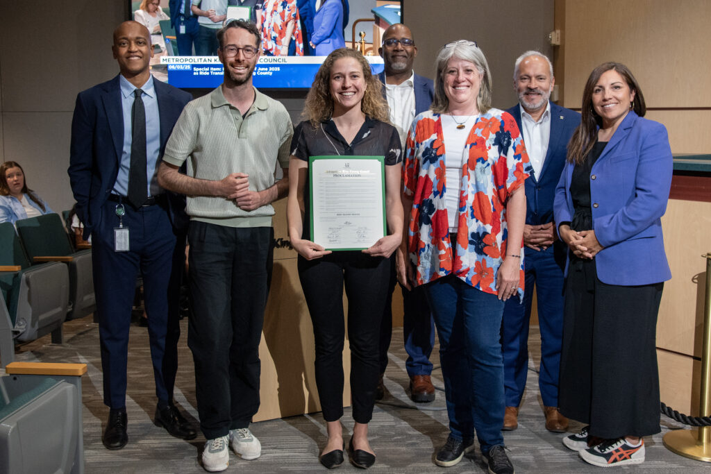 TCC staff receive the Ride Transit Month proclamation from the King County Council